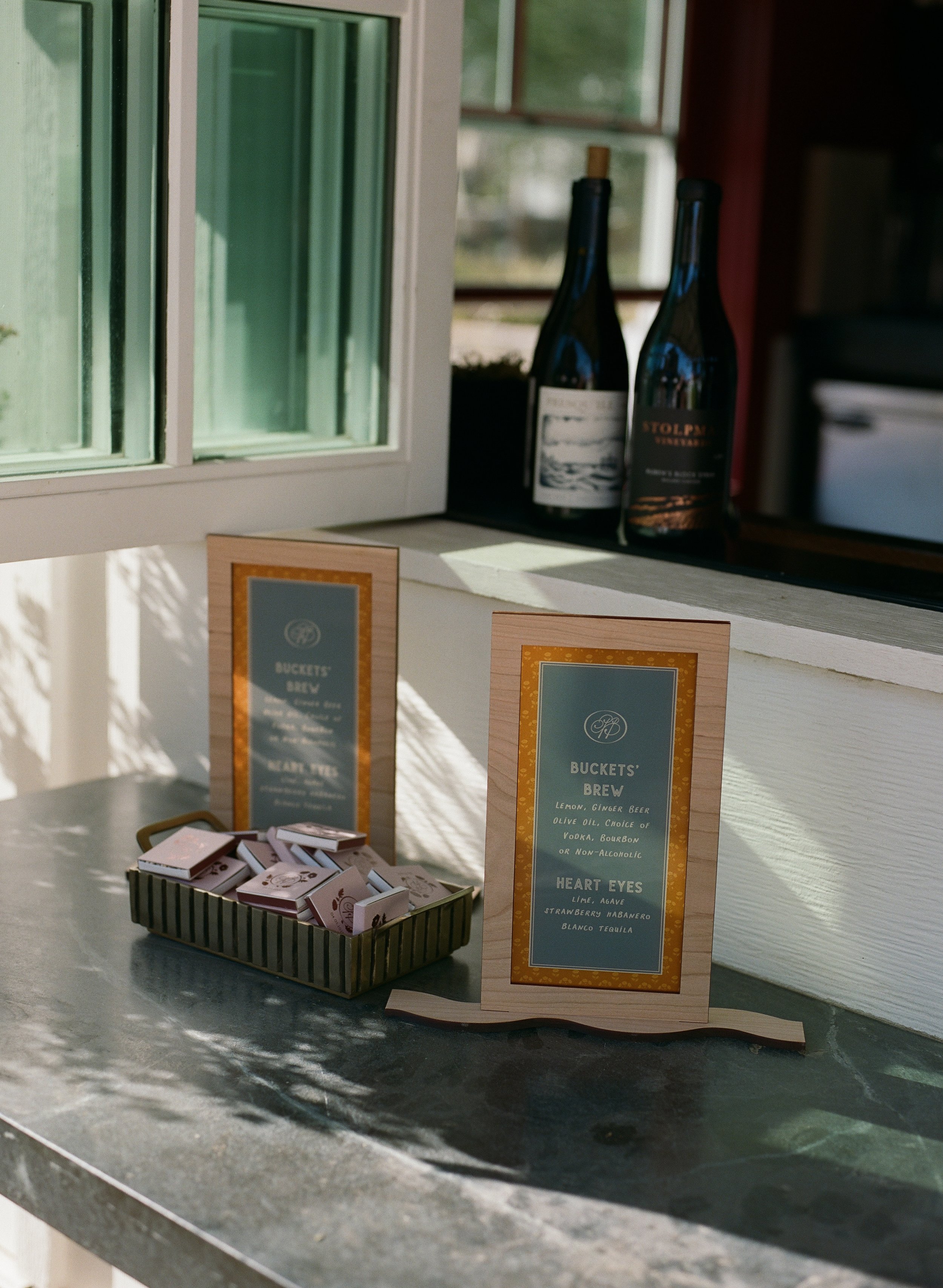 These thoughtful details carried throughout the celebration, appearing on escort cards, bar signage, matchbooks, menus, and other day-of pieces. Each element echoed the same stripes, colors, and playful motifs first introduced in the stationery. The result was a cohesive design story that flowed effortlessly from the first impression to the final toast.